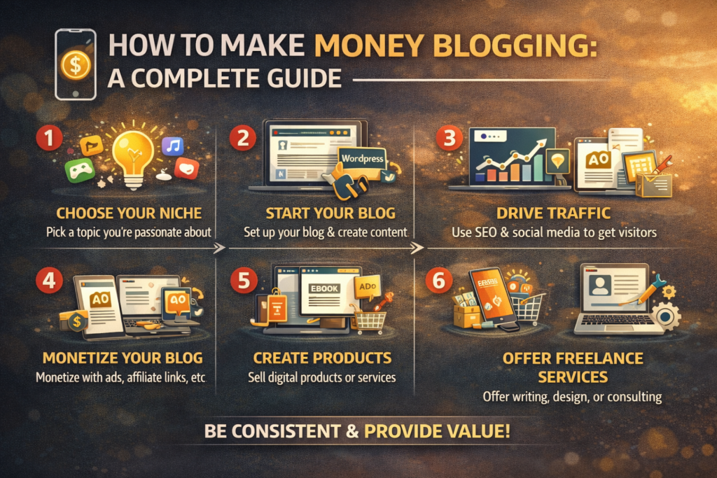 Making money blogging in 2026 is more achievable than ever, thanks to digital tools and online marketing strategies. By choosing a profitable niche, creating valuable content, growing your audience, and diversifying your income streams, you can turn your blog into a sustainable source of revenue. Whether your goal is a side hustle or full-time income, consistent effort and smart strategies will help you succeed in the blogging world.